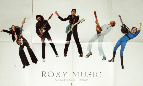 I remember seeing a billboard in Edinburgh for something called Roxy Music, it was 1972. The blown up image was a 1950s-style album cover featuring a stunning female model (photographer Karl Stoecker shot the cover with model Kari-Ann Mullerand) and I thought to myself, what is Roxy Music? It didn’t take me long to find out in the music press that it was the debut album by an English art school band who dressed in totally out-there glam gear and got shouted at when they played live for being somewhat effeminate looking. The first ‘Roxy’ music I heard was the single ‘Virginia Plain’ then I bought the album which was amazing in every way. Unfortunately, I was a bit too young to be going to rock concerts so the closest I ever got to seeing early Roxy Music was when I was on the top deck of a bus going up Lothian Road and saw them get out of a black limousine to walk into the foyer of the Caledonian Hotel in Edinburgh’s West End. They were wearing all their glam clothes and looked amazing so it was a real bummer to miss the concert which I think was at the Odeon cinema.